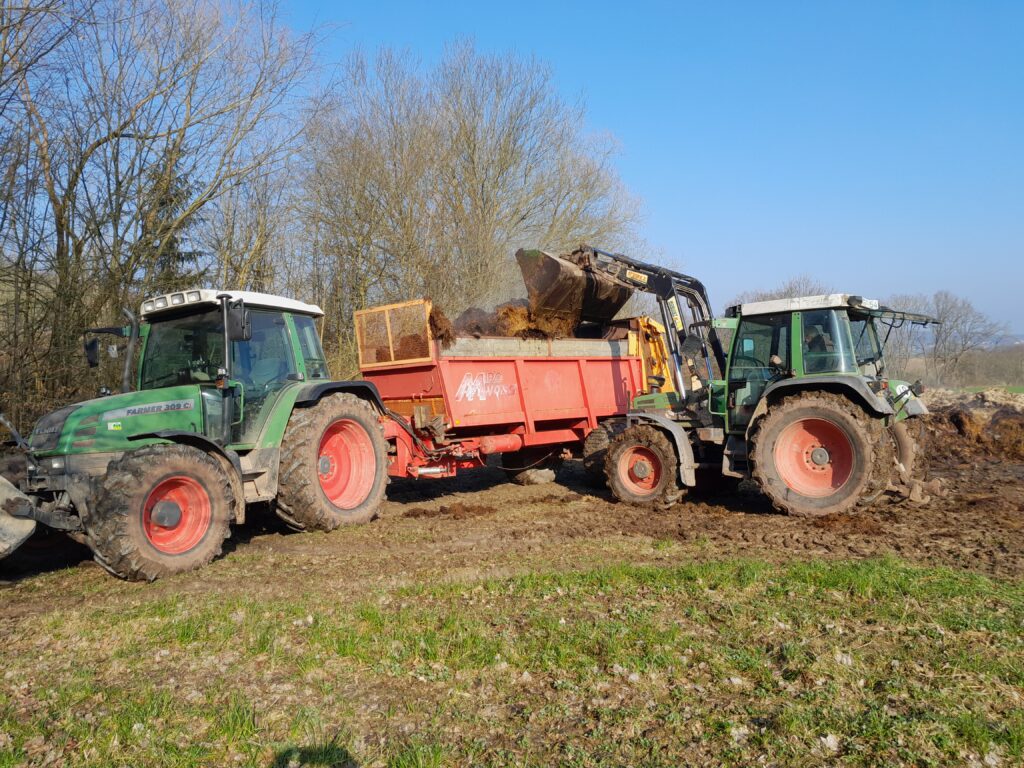 Unsere gut 90 Hektar landwirtschaftliche Nutzfläche, die wir nach den strengen Bioland-Richtlinien bewirtschaften, teilen sich in 42 ha artenreiches Grünland für die Rinder und 48 ha Ackerfläche auf. Auf den Ackerflächen bauen wir Roggen, Weizen und Dinkel für unser Brot sowie Futter für unsere Schweine, Kleegras für die Rinder und Kartoffeln für unsere Kunden und uns an. In drei Folientunneln wächst zudem Gemüse.